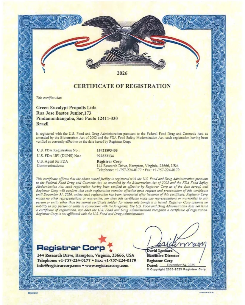 ApisBrasil® 綠蜂膠滴液 SGS 認證